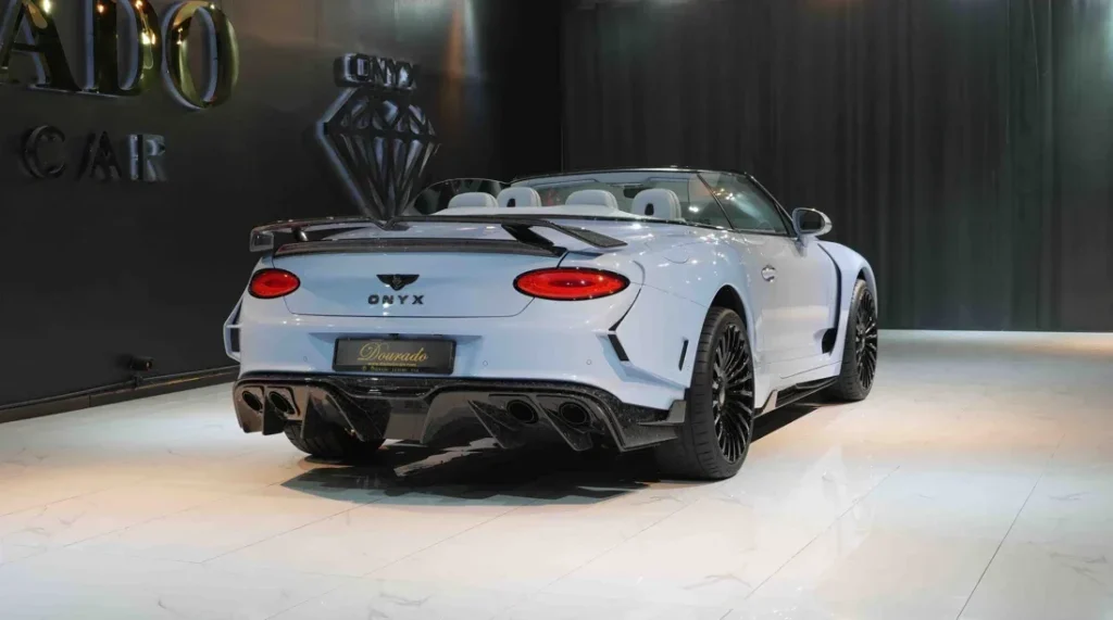 – Complete Refined Interior by Exclusive Leather Sorts Seats in Baby Blue with Beluga Blue stitching matched with Onyx Emblem